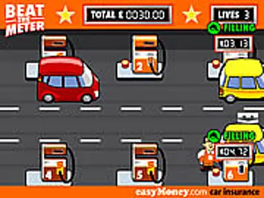Each Driver has $10.00 they wish to spend at the pumps. When a car arrives, use the cursor keys to guide Stelios to a pump to start filing it up. But make sure you return to the car in time to stop it at $10.00. A car left overfilling loses you money and creates a dangerous spillage! A bucket of sand will make it safe. You only get 3 buckets per game.