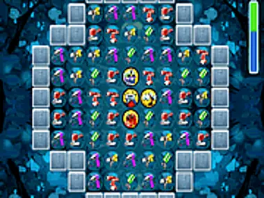 Match 3 or more symbols as you side columns and rows. Try to match them next to bugs to kill them.