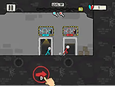 עזרו לשני גנבים קטנים כלואים לברוח מבית כלא שמור במיוחד במשחק Crazy Stickman Escape! האם תצליחו לתפוס את כל השטרות ולמצוא את מפתח המאסטר שיפתח את דלת האבטחה התואמת את צבעכם? זה נשמע קל, אבל לא לכל השחקנים תהיה הזריזות המחשבתית ומהירות התגובה כדי לפתור כל שלב בזמן שיא - המתקן מלא בשומרי אבטחה, מצלמות, רחפנים, קרני לייזר וכל מיני מכשולים מסוכנים! אל תיכנעו למלכודות שיעמדו בדרככם! הביאו את שתי הדמויות הראשיות של המשחק למקום מבטחים! תהנו לשחק במשחק הזה כאן ב-Y8.com!