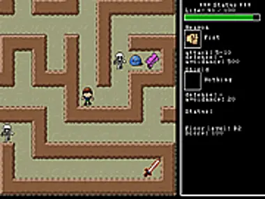 Explore the maze as you pick up and equip weapons and shields. Use potions to stay alive.