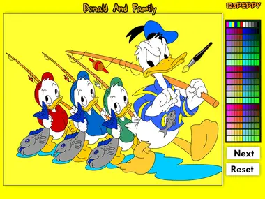 Paint your Donald and Family Online Coloring Game with your favorite colors.