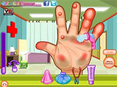 דורה ובוטס טיילו ביער. לפתע דורה מעדה וידיה נפצעו קשה. האם תוכלו להשתמש בידע הטיפולי שלכם כדי לעבוד כרופאים ולטפל בידיה של דורה? יש לנו את כל הכלים, התחבושות והתרופות שאתם צריכים. לאחר הטיפול שלכם, נוכל להעניק לדורה מניקור מהמם. בואו נשחק את משחק "דורה רופאת ידיים מטפלת" המהנה הזה ונהנה!