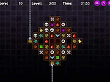 Match two similar pieces to remove them from play. Remove all of the Halloween themed pieces from play to move to the next level.