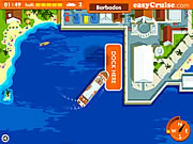 Steer Easy Cruise One around the Caribbean ports by using the cursor keys. Sail her carefully into the dock to complete the level. Each level is a little more difficult as the ports get a little busier and the wind speed increases. Use the A and S keys to help nudge the bow of the boat with the bow thrusters.