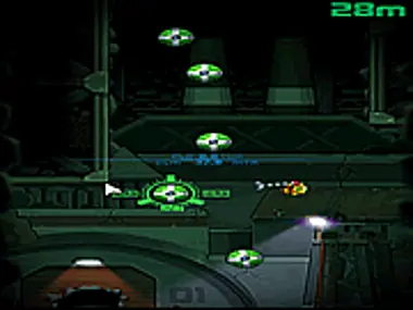 Grapple onto floating bombs and quickly switch to higher ones before the grappled one explodes.