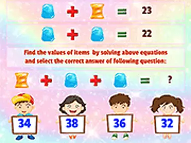 'מתמטיקה ממתקים' הוא משחק חידות מתמטי. במשחק הזה אתה צריך למצוא את המחיר של כמה ממתקים על ידי פתרון משוואות נתונות. הפעולות בבעיות מורכבות מחיבור, חיסור, כפל וחילוק. ברגע שתמצא את ערכי הממתקים, השתמש בערכים אלה כדי למצוא את התשובה לשאלת מתמטיקה פשוטה.