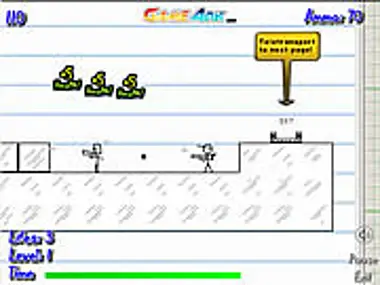 Grab ammo and new weapons as you take on stickmen in the notebook landscape.