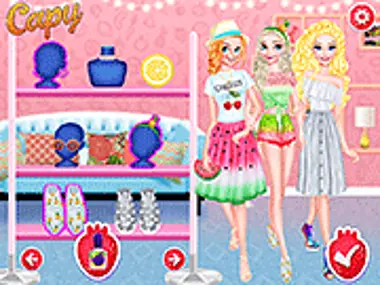 נסיכת הקרח, אנה ובלונדי החליטו לעשות ציפורניים פירותיות יפות למסיבת הקוקטייל של סוף השבוע והן רוצות שתעזרי להן לבחור את הצבעים והדוגמאות. ומכיוון שהן הולכות על אופנה פירותית, הנסיכות גם רוצות ללבוש תלבושות פירותיות. אז הנה ההזדמנות שלך להוכיח את כישורי האופנה שלך! ערבבי והתאימי שמלות חמודות בהדפס פירות עם סנדלים ואביזרים מקסימים, או ערבבי והתאימי חצאיות או מכנסיים קצרים חמודים עם חולצות פירותיות. כמו כן, ודאי שתתני להן תסרוקות אופנתיות ומתאימות!