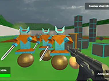 Robot Base Shootout 3D - Malain nga mga robot gusto ka laglagon, pusila sila! Isa ka maayo nga first-person shooter nga may lainlain nga mga armas kag malain nga mga robot. Gamita ang imo kahanas sa sini nga classic nga FPS nga hampang sa pagpuntarya kag pagpusil kag magkuha man sang bag-o nga mga armas. Maghampang na kag pauswaga ang imo kahanas sa mga hampang nga shooter.