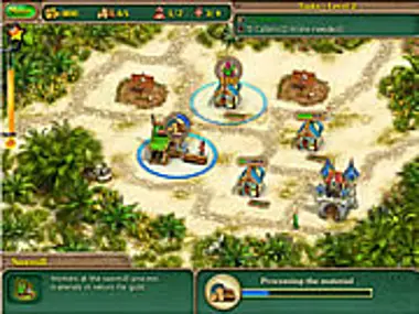 Manage your village. Follow the tutorials and create cabins and sawmills, then progress to more.