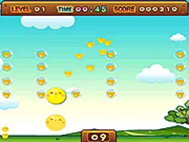 The rubber sun ball is moving up and down, control its movements as well as collect the fixed balls.