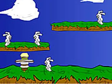 Run and jump and swing your hammer at the evil bunnies. One touch from a bunny and you're dead.