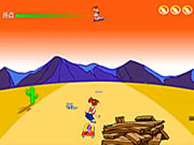 This is a skateboarding game, you are controlling a girl on a skateboard by your mouse, try to avoid all the obstacles and get to the final line before time runs out.