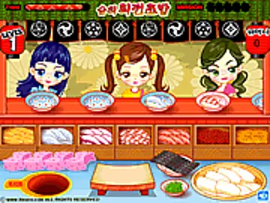 First place the rice, then the wasabi and at last the nori to make a little sushi roll. Hurry! Your customers are hungry.