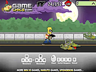 Bart has a very difficult mission. Help him protect the town and kill all zombies. Collect points and guns on the street.