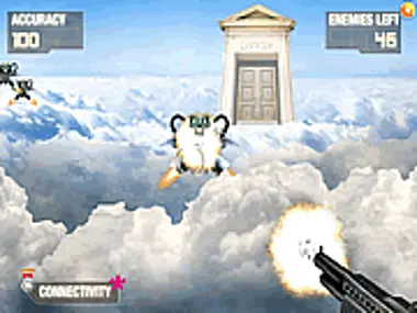 Shoot the different types of enemies that pop up and fly around you. Watch those reload times.